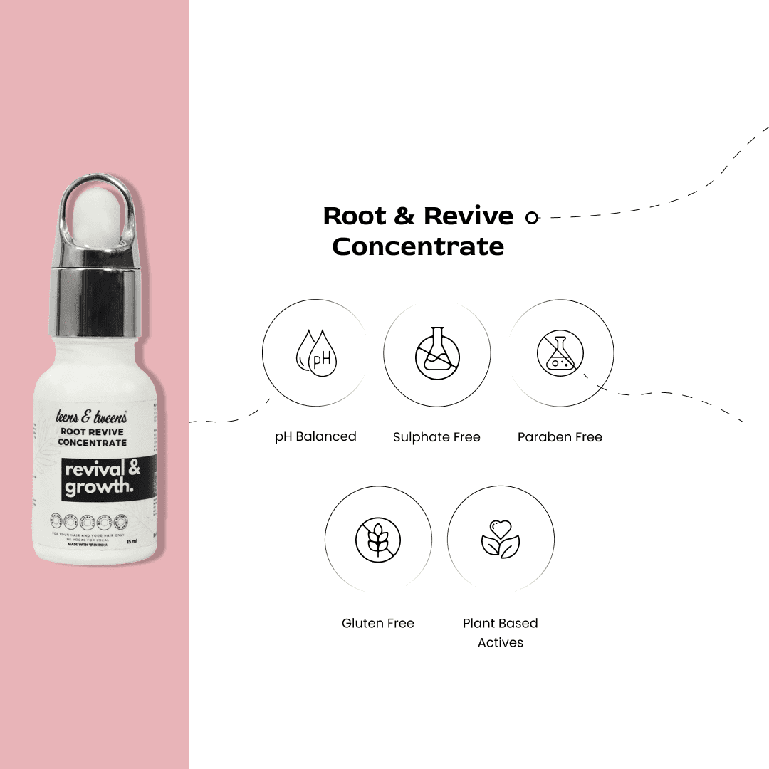 Understanding the unique challenges faced by Teens and Tweens with their dynamic lifestyles, our Root Revive Concentrates are crafted to specifically address their hair care concerns.